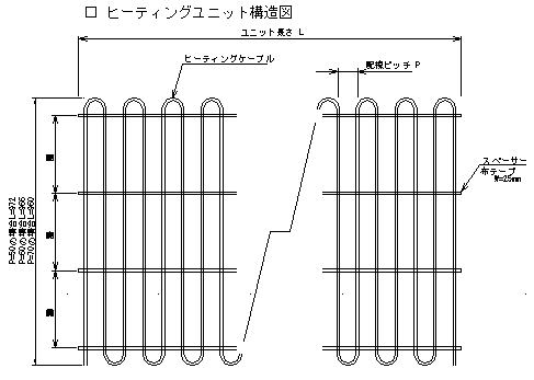 1)ヒーティングケーブルを所定のピッチですだれ状に加工したものがヒーティング ユニットです。
