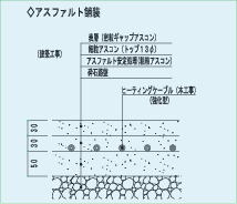 地下水の散水方式にみられる地盤沈下や、融雪剤散布などによる環境への影響の心配がまったくありませんし、運転音もありません。また、発熱部の構造が簡単ですので、道路、駐車場はもちろん、階段、屋上、パラペット部、中庭など多くの対象に敷設することができます。